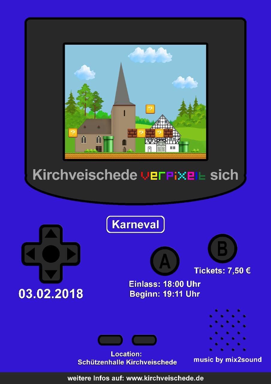 Kirchveischede verpixelt sich – Bi Närrisch Was für ein Motto! Computerspiele, Game Boy, Tetris und natürlich Karneval werden das Bühnenbild unserer Schützenhalle prägen. Wem die Begriffe nicht viel sagen oder wer noch keine Verkleidung hat, hier gibt es Erklärung und Hilfe: Verpixelt heißt einfach sich unkenntlich zu machen. Noch nicht mit Alkohol! Später. Also sind … Weiter lesen