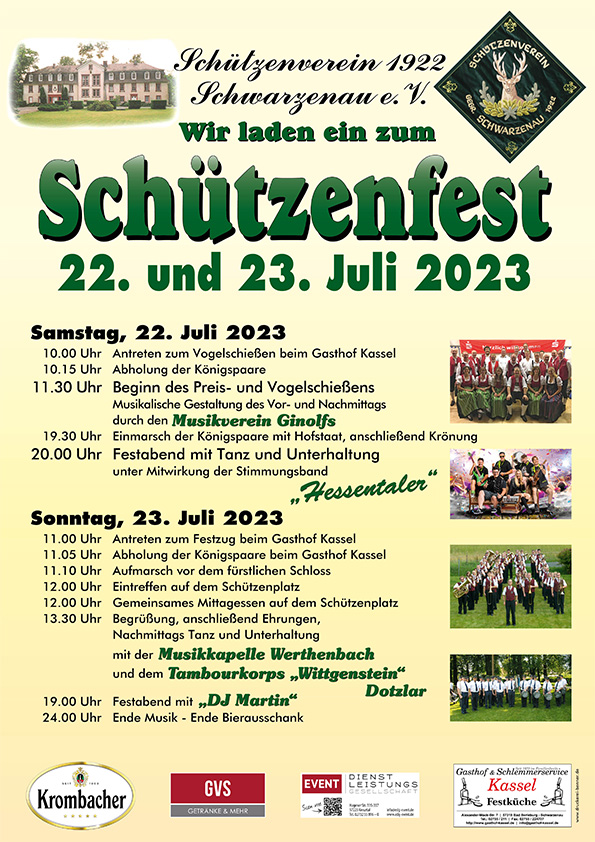 Am 23.07.23 fahren wir gemeinsam zum Schützenfest nach Schwarzenau. Los gehts mit dem Bus um 9:00 Uhr ab Kirchveischede. Anmeldung beim Vorstand oder info@schuetzenverein-kirchveischede.de