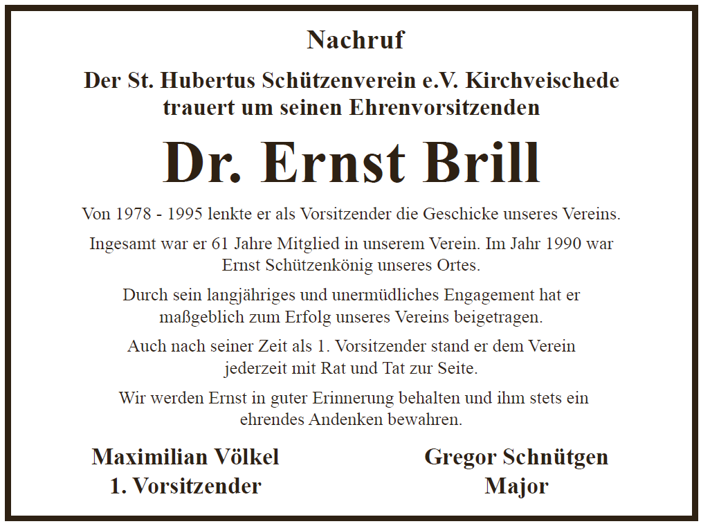 Das diesjährige Schützenfest findet bekanntlich Coronabedingt nicht statt. Dennoch werden wir am Sonntag, den 02.08.2020 um 11:00 Uhr eine Schützenmesse im Kirchpark feiern. Hierzu ist jeder herzlich willkommen! Im Anschluss legt der Vorstand in kleinem Rahmen einen Kranz am Ehrenmal nieder. Wir bitten alle Bürger den Ort am ersten Augustwochenende festlich zu beflaggen.