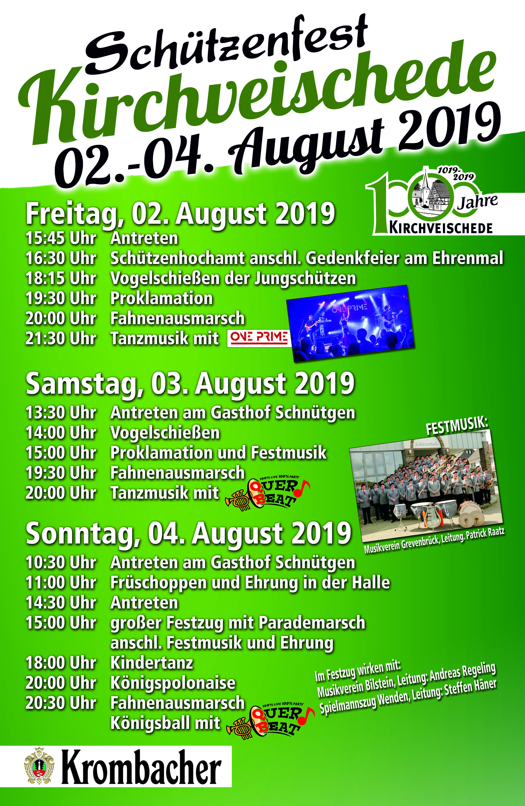Am Sonntag, den 25.08.2019 besuchen wir gemeinsam das Schützenfest bei den Nachbarn in Oberveischede. Wir machen uns zu Fuss auf den Weg. Treffpunkt: 11 Uhr beim Gasthof Schnütgen Der Vorstand freut sich auf rege Beteiligung.